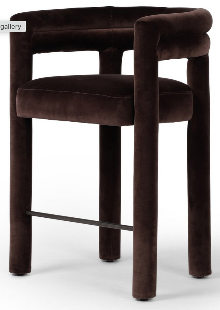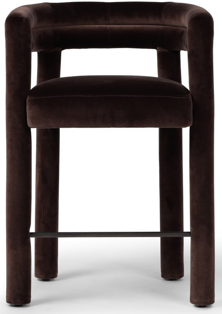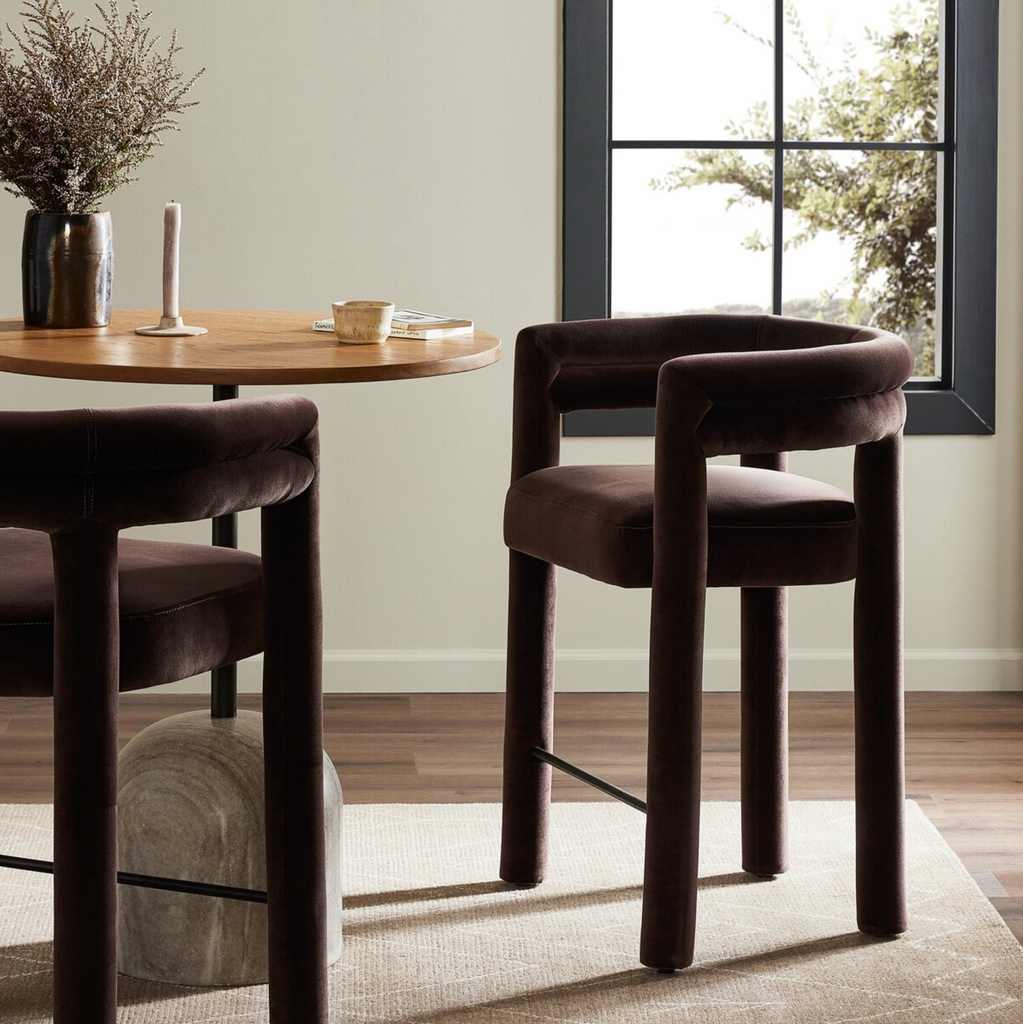 Tubular shaping lends a fluid look to this fully upholstered dining style of soft, velvety cotton.