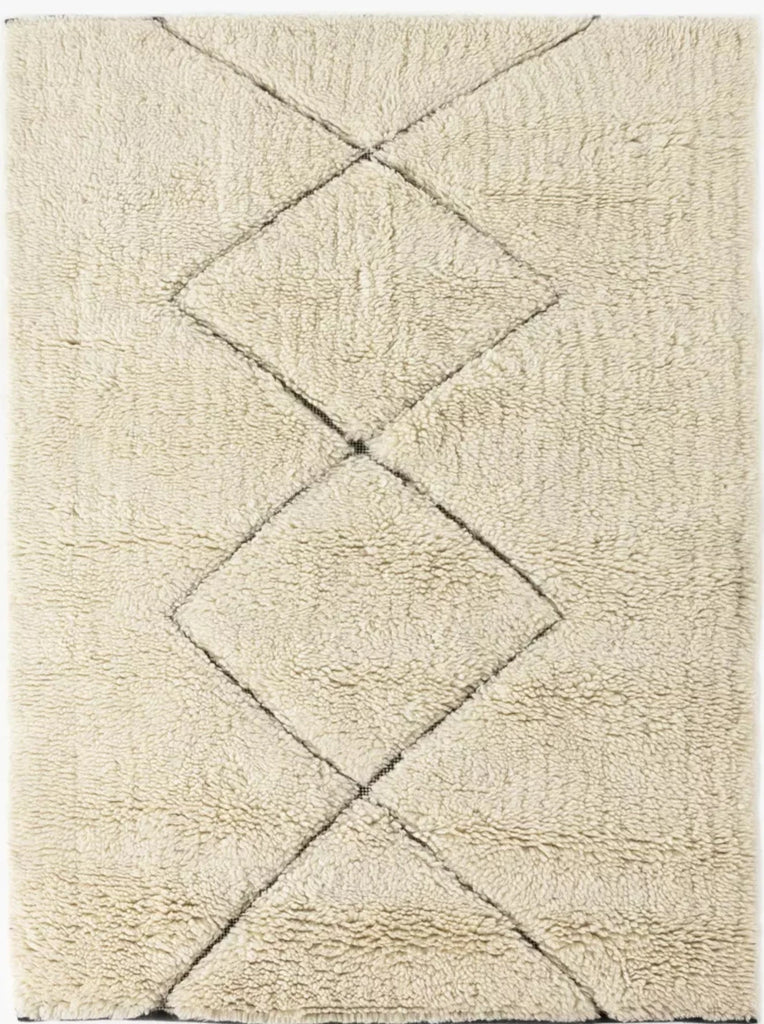 Inspired by vintage Moroccan motifs, a hand-tufted blend of cotton and wool works a plush, shaggy look into any space. Due to the natural structure of wool fibers, some initial shedding may occur but will decrease over time and with regular vacuuming.