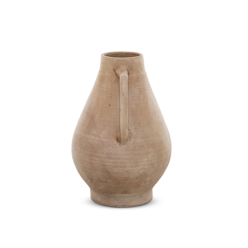 Aged terracotta is lightly antiqued, bringing a new, natural finish to this simplified wine jug silhouette. Hand-thrown clay ensures each piece has unique character. Not water-tight; for decorative use only.