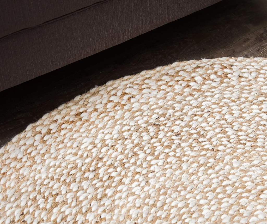 Perfectly relaxed, casual and ready for anything--this rug will make itself at home in any setting. Golden jute and silken, ivory PET yarn are hand braided to delightful effect. A great solution for underneath your dining table or as an inviting option for your entry way and living rooms too.
