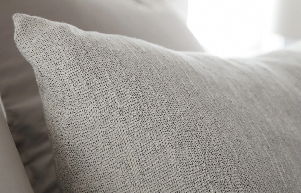 100% organic cotton grown in India + woven in Portugal with a down feather insert.