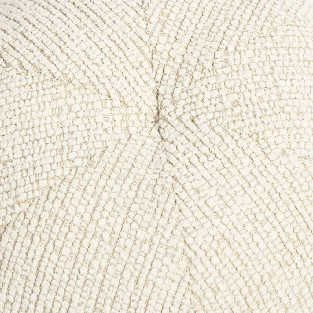A vary-sized set of cream pillows in a channeled fabric, for a fun pop of texture. Larger pillow measures 12" in diameter; smaller pillow measures 10" in diameter.