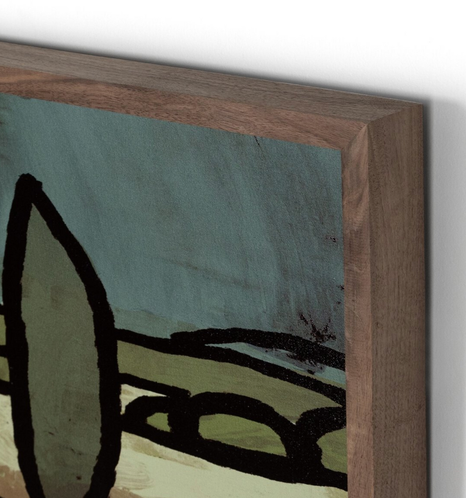 Artist Dan Hobday finds inspiration in the coastal landscapes of his hometown of Devon, England. This nature-inspired piece is printed on matte canvas with spot glass detailing and framed in rustic-finished walnut for a gallery-quality look. If not currently in stock, this texture-enhanced piece ships within three weeks. Handmade in Austin, Texas.