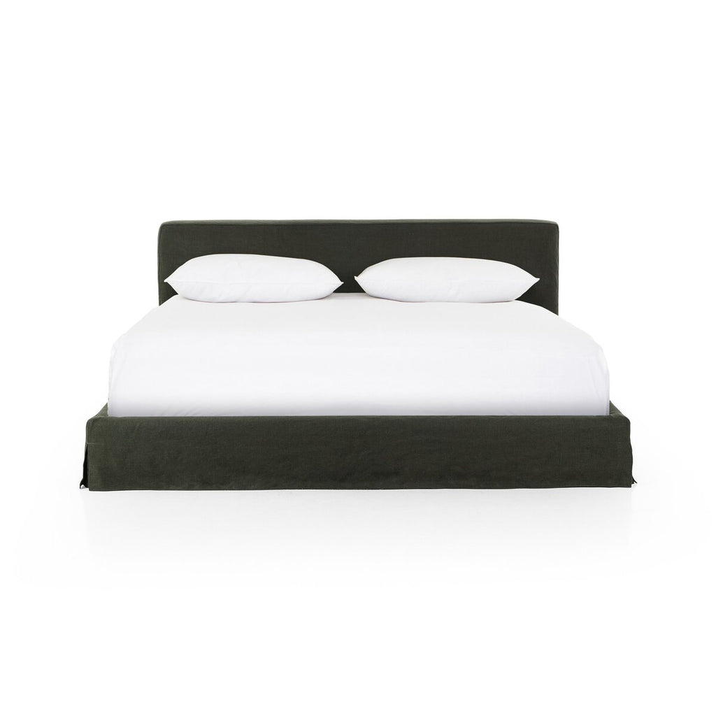 Crafted for comfort. A low, slipcovered bed features luxurious and sustainably made Belgian linen. Durable and soft to the touch, Libeco™-sourced linens and linen blends are artisan-made without toxic chemicals. Slipcovered styles are fully removable and machine-washable for easy care.