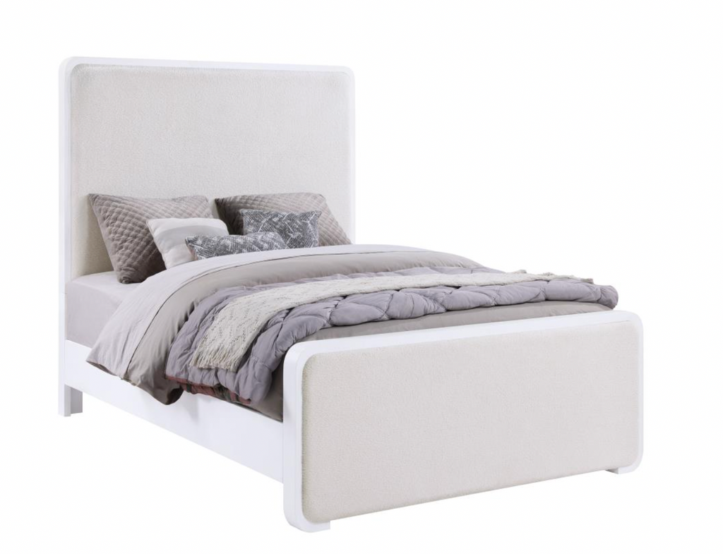 Padded upholstery brings inviting comfort and softness to the neutral palette of a modern bed.