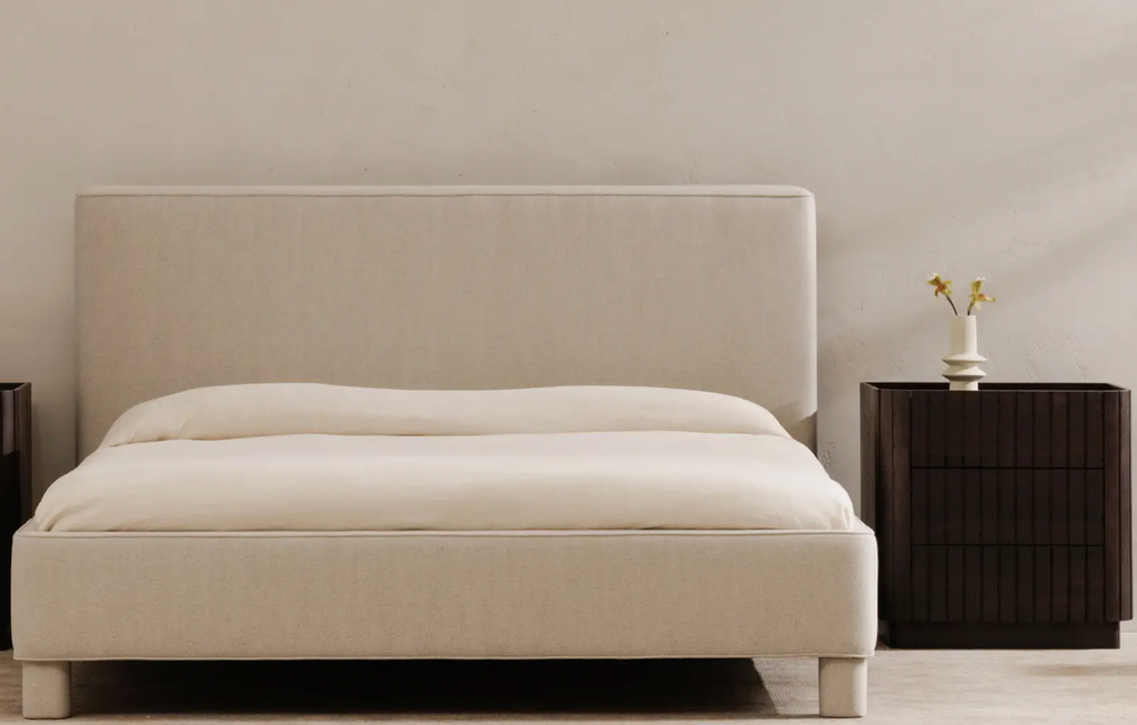 A testament to the timeless allure of a classic form, the Ikiro bed's sleek, rounded edges complement the expertly proportioned headboard. Its generous height provides exceptional support and adds a touch of sophistication to any bedroom ensemble. Upholstered in a luxuriously soft touch material created from premium polyester, the bed invites you to sink into its plush comfort and offers ensuring lasting beauty for years.