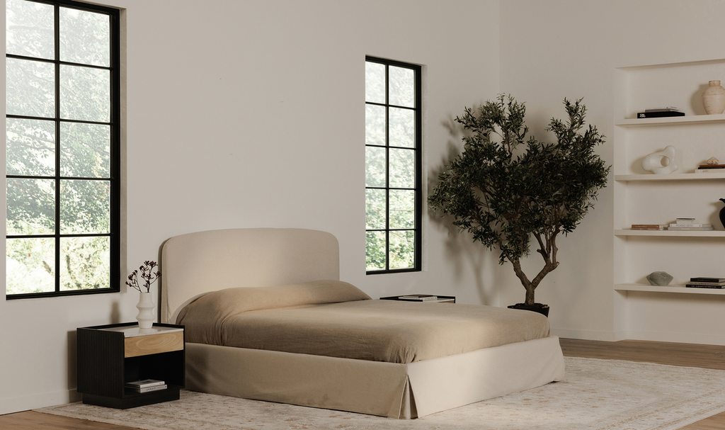 The Joan bed is more than meets the eye, with a hidden compartment that is tastefully innovative and easy to access. Beneath the mattress, a hydraulic system reveals ample storage space neatly tucked away, while a fully removable slipcover allows easy cleaning. The upholstered frame features the same fabric as the slipcover, so it can also be used on its own, providing two easy options to create the same classic look.
