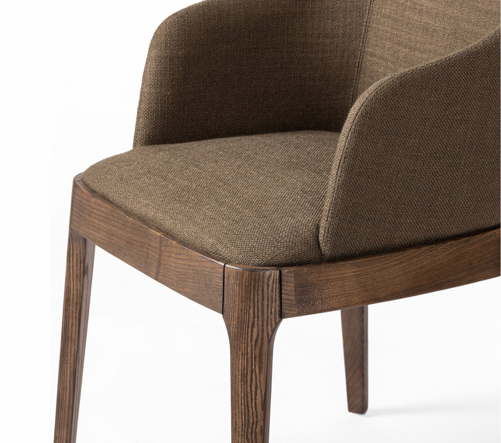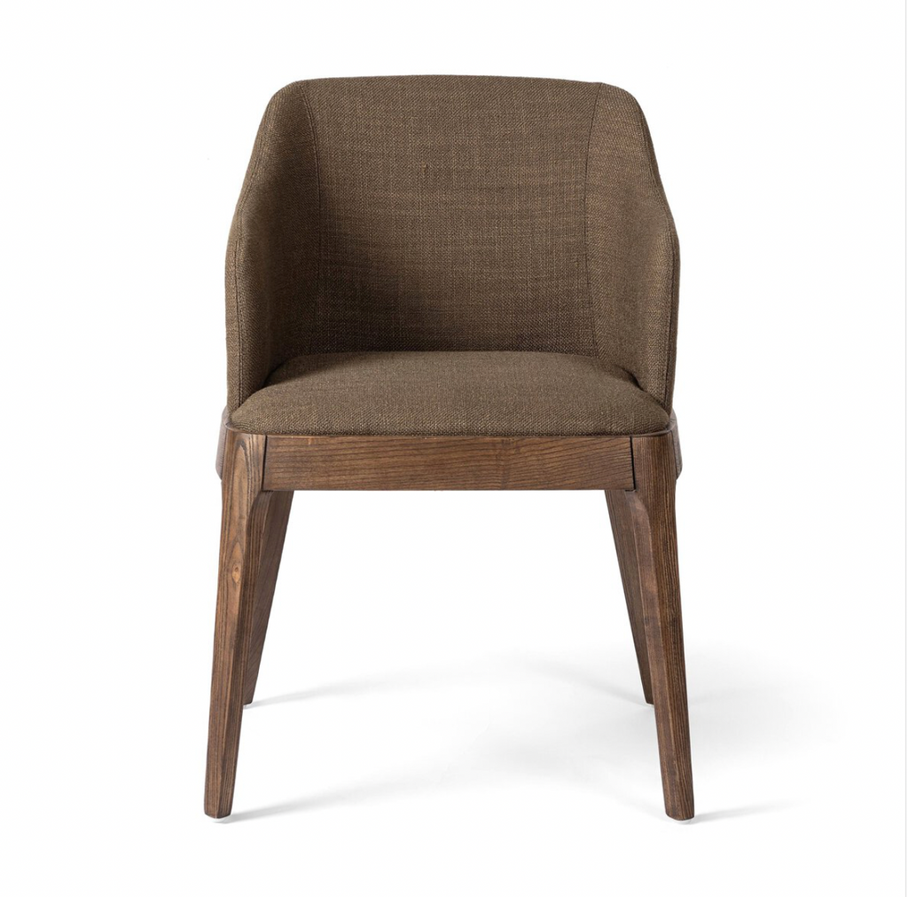 Indulge in luxury with the Brie Dining Chair. Crafted with dark ash finished parawood legs, it features a shapely, olive high-performance fabric seat that is both stylish and durable. Perfect for everyday dining, this chair offers unmatched comfort and long-term durability with its performance fabric.