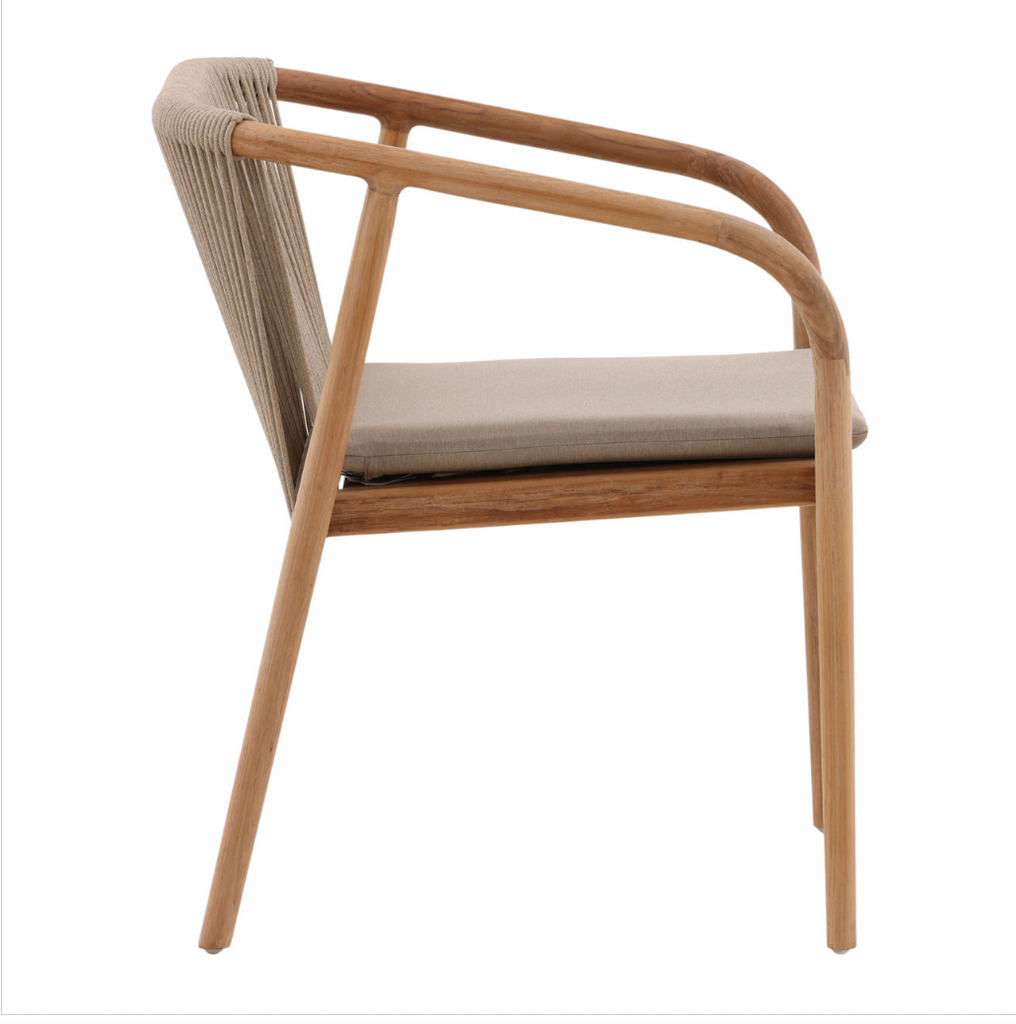 Material: Synthetic Rope, Olefin Fabric and Teak WoodFinish: Beige and Natural