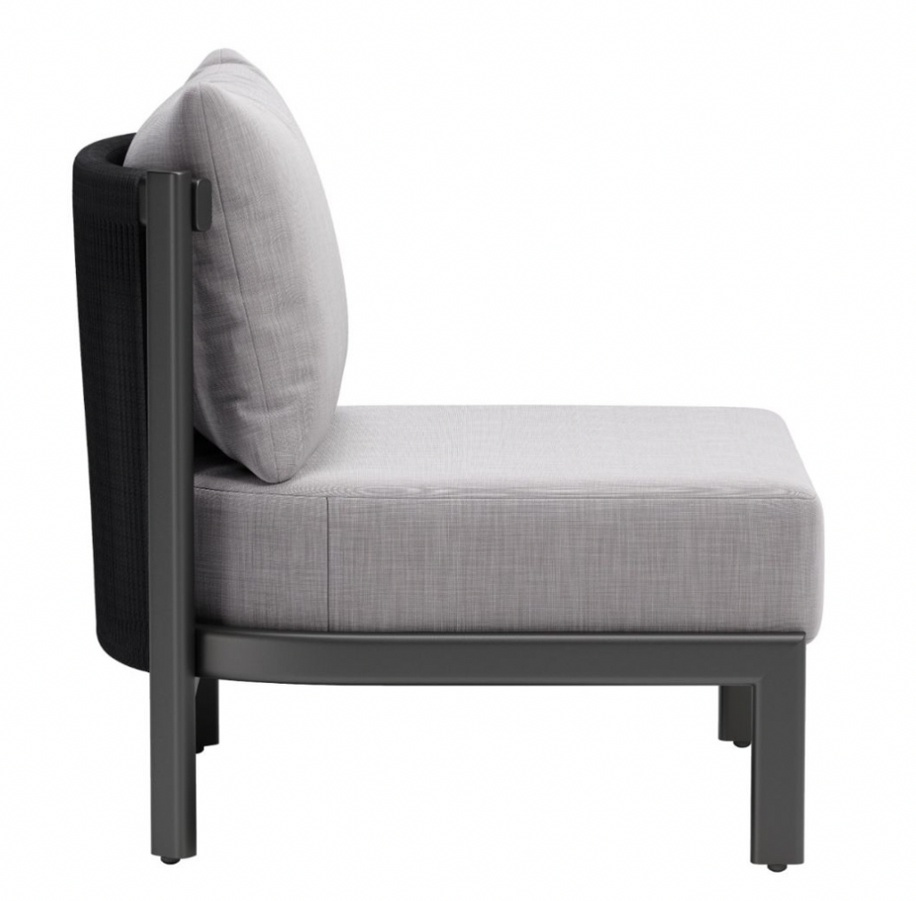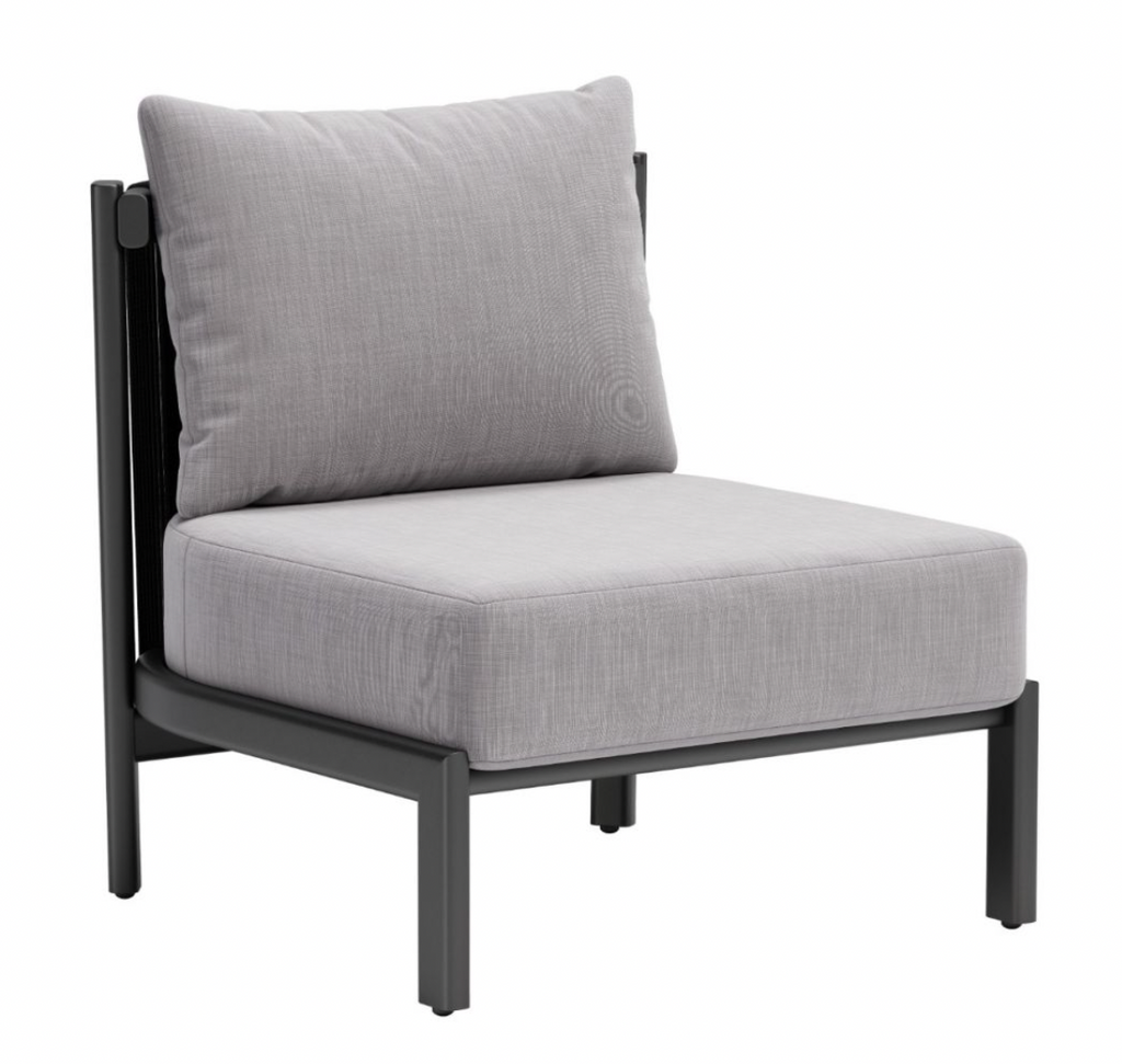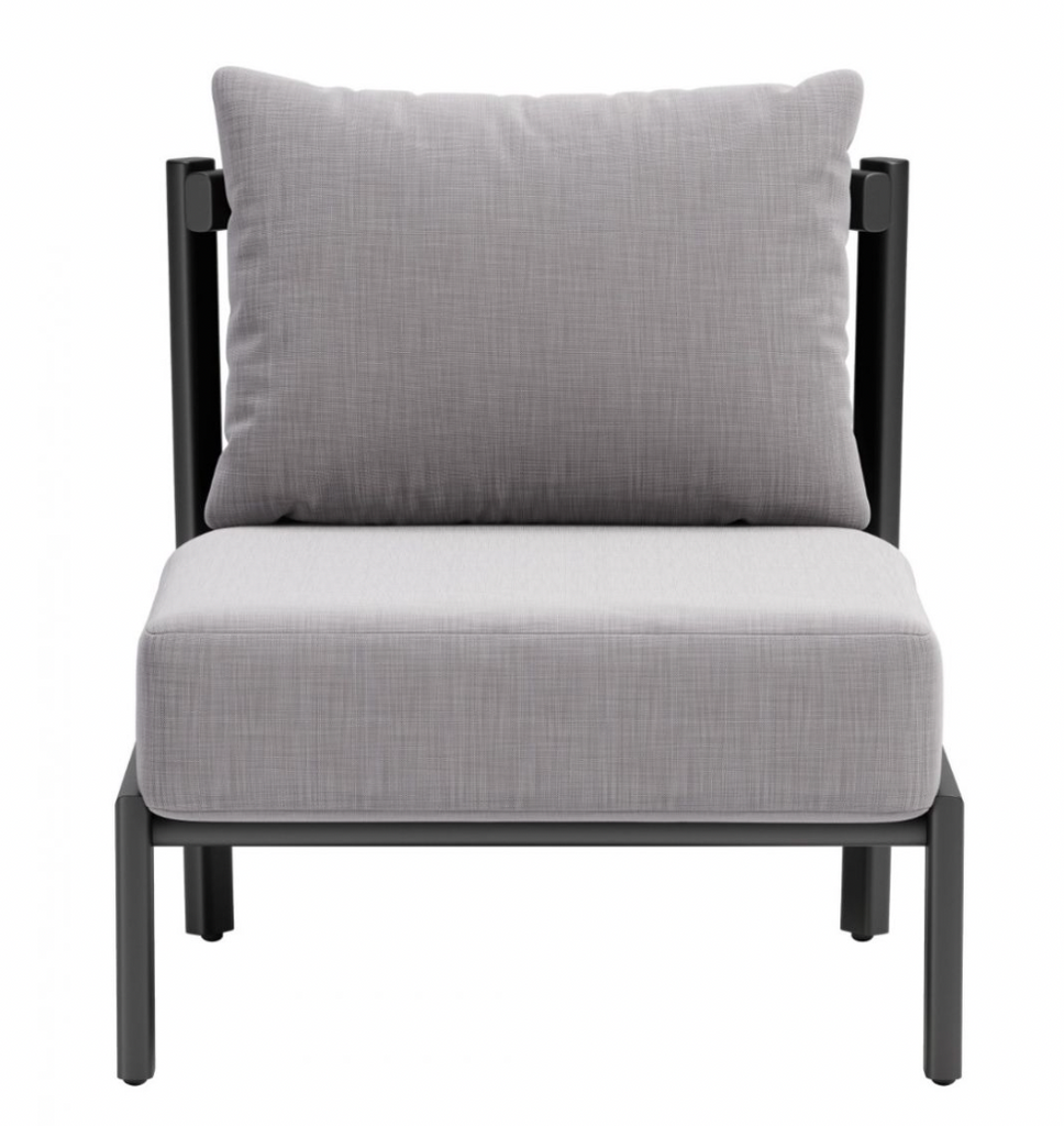 A stylish comfy outdoor chair with 100% outdoor fabric and powder coated aluminum frame.