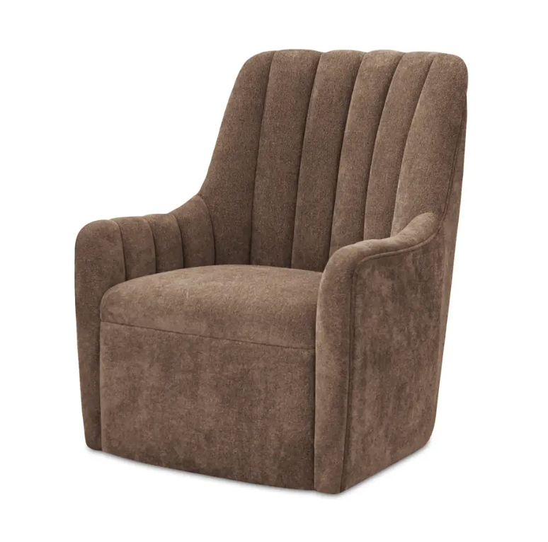 The Turner swivel chair's high-back design provides essential support, while the stylish channel detailing adds a modern touch. A 360-degree swivel feature enables effortless functionality. The chair's soft, textured fabric upholstery ensures lasting style.