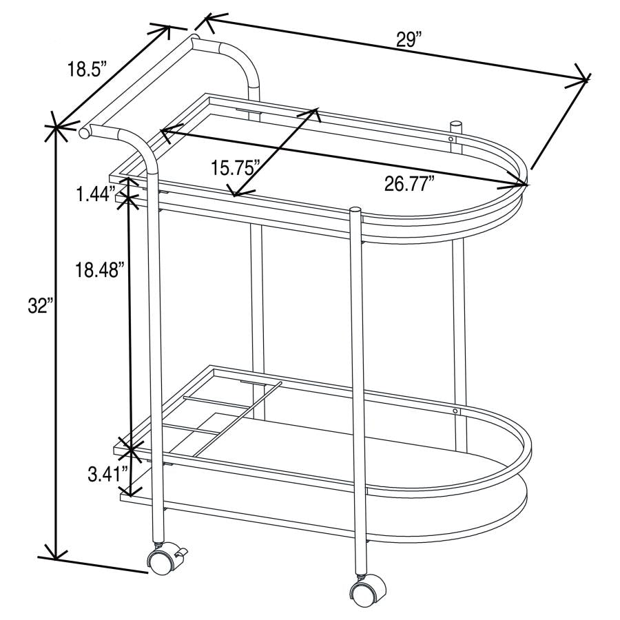 Carrara marble pattern tempered glass shelves with three shelves, stemware racks, and twenty-four-bottle wine rack.