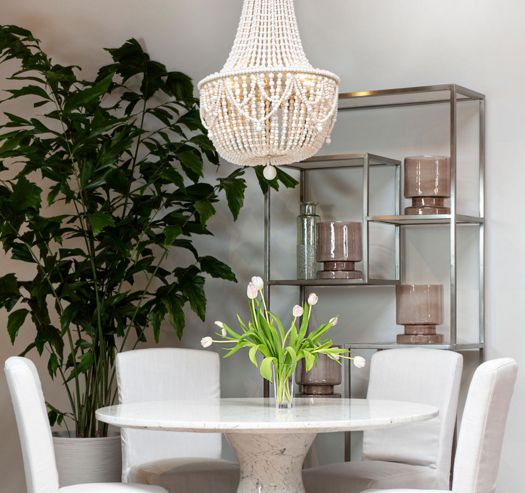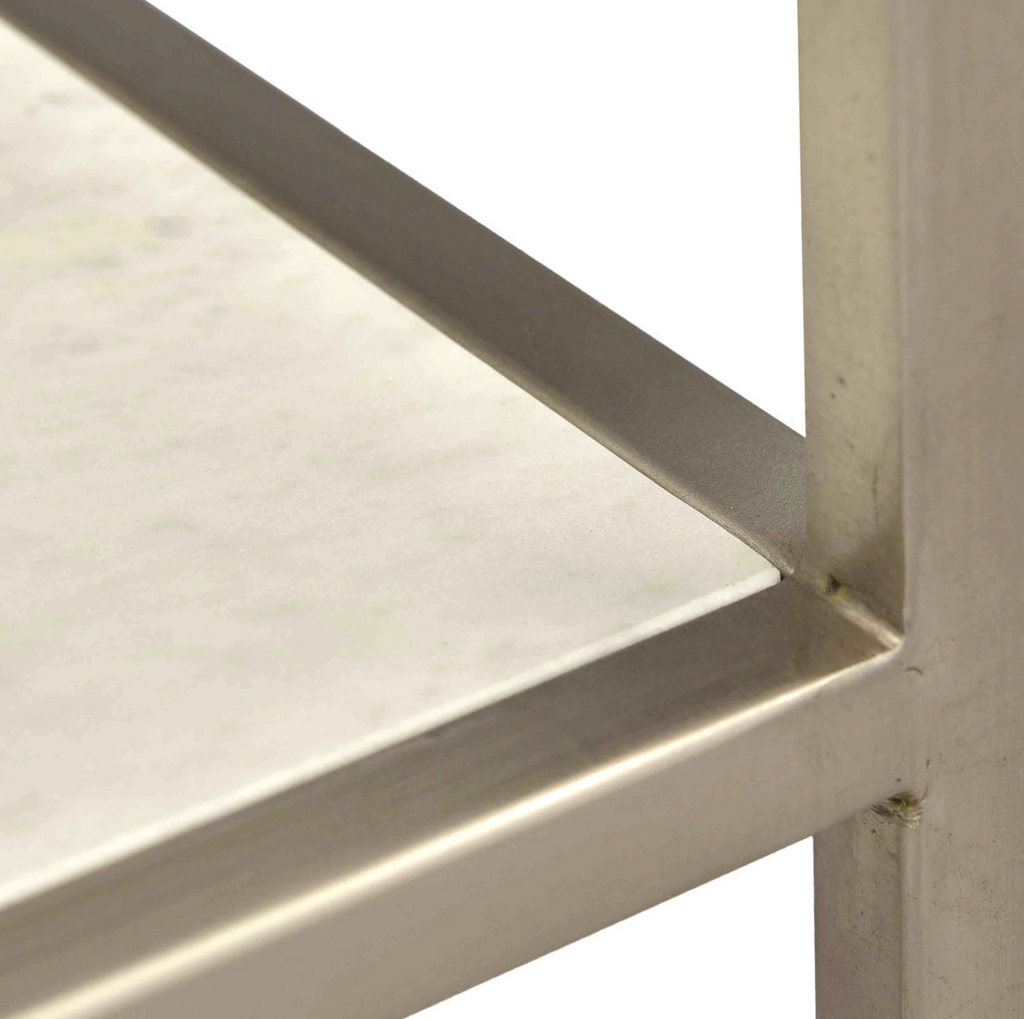 Streamlined an for an cubic modern glam look, this features an open design that will breathe life into any space of your home. The brushed nickel finished frame and white marble shelves creates a simple airy bookcase with plenty of space for books and decorative accents.