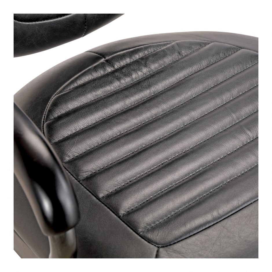 This leather desk chair is the ultimate combination of comfort and style for your recording studio, home office, study nook - or you name it. Its vintage look is achieved with a top grain leather upholstery supported by a plywood frame and detailed with steel hardware. Perfect for getting those creative juices flowing through a tough workday, its ribbed, high-comfort padded seat features armrests and mid-back support. Most likely, the last office chair you will ever have to purchase - its transitional design is suited for any office decor.