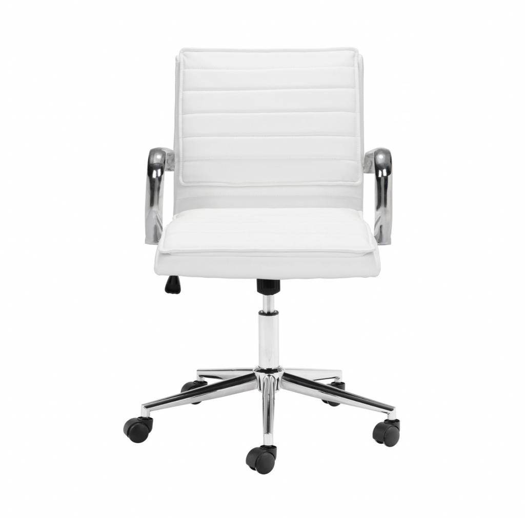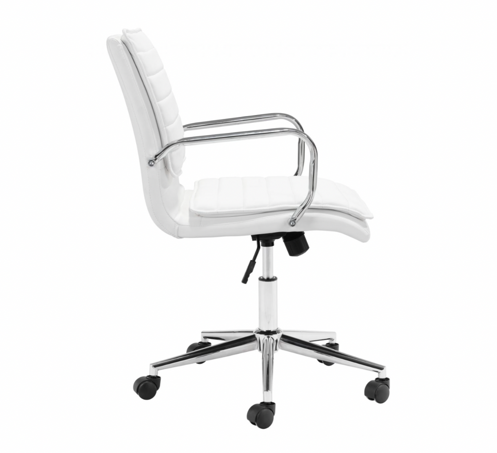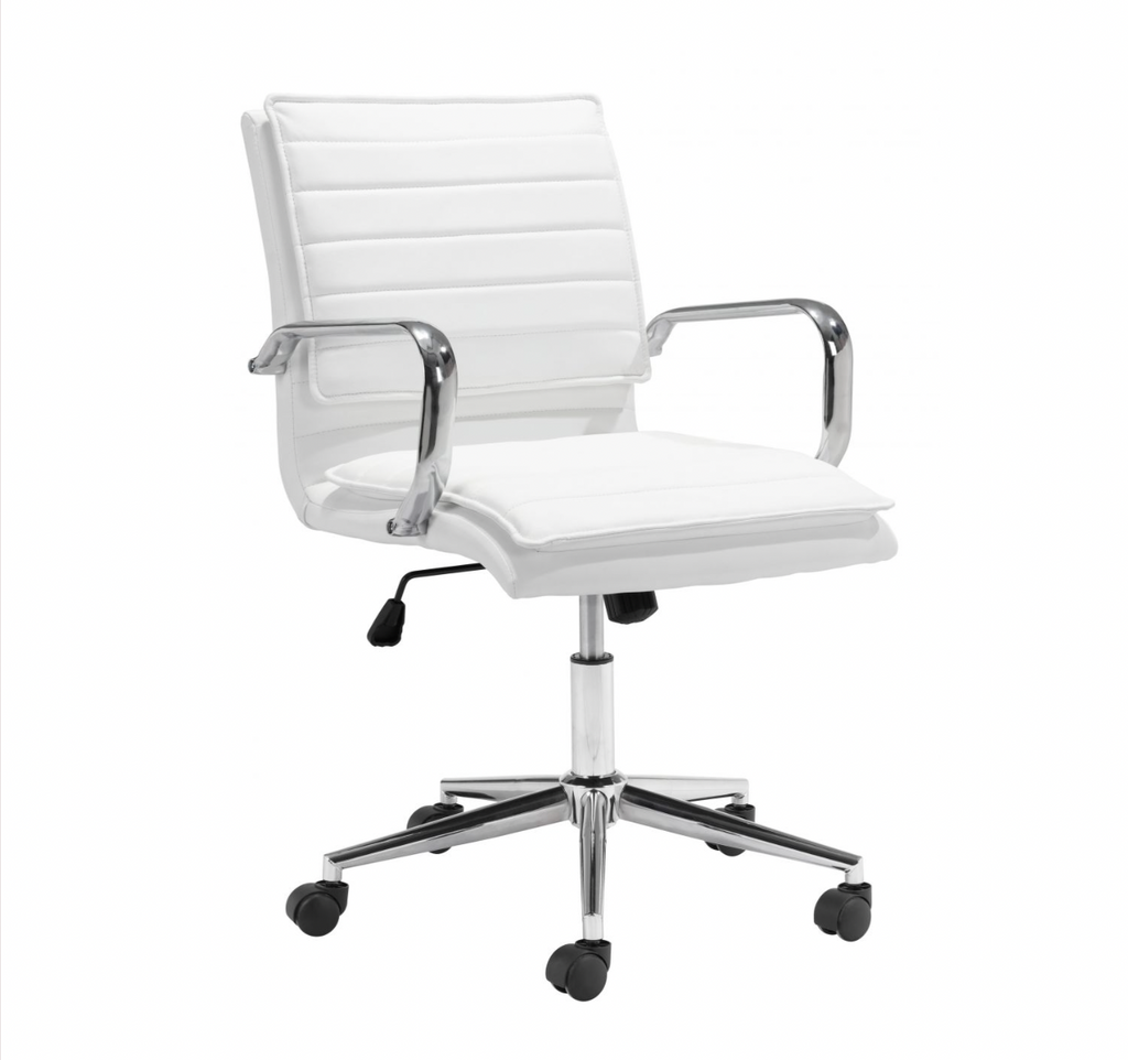 This office chair is wrapped elegantly with a sturdy frame, height, and locking tilt adjustment, with a rolling base.  Looks great in any home, office or commercial space.