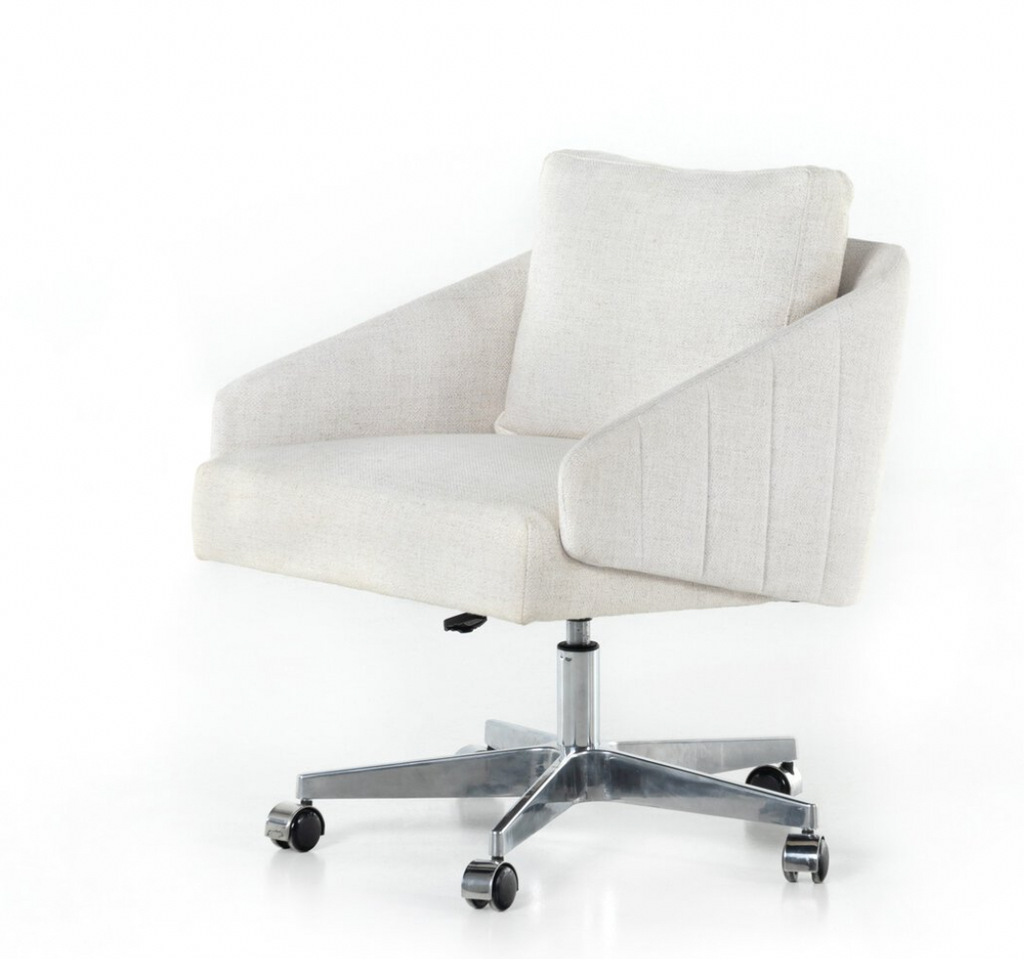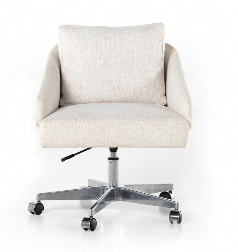 Everything needed to work in style. A nickel-polished aluminum base features casters for ease, with plush, angular upholstered seating in a versatile off-white. Height adjustable.