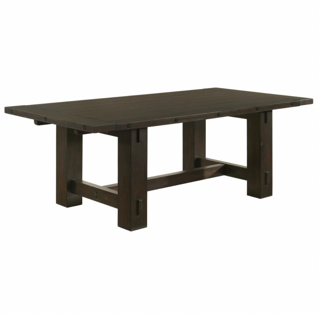 his solid mahogany dining collection reflects a craftsman style made for families and friends to enjoy. The dining table has two 18" extension leaves which allows up to ten chairs for guests