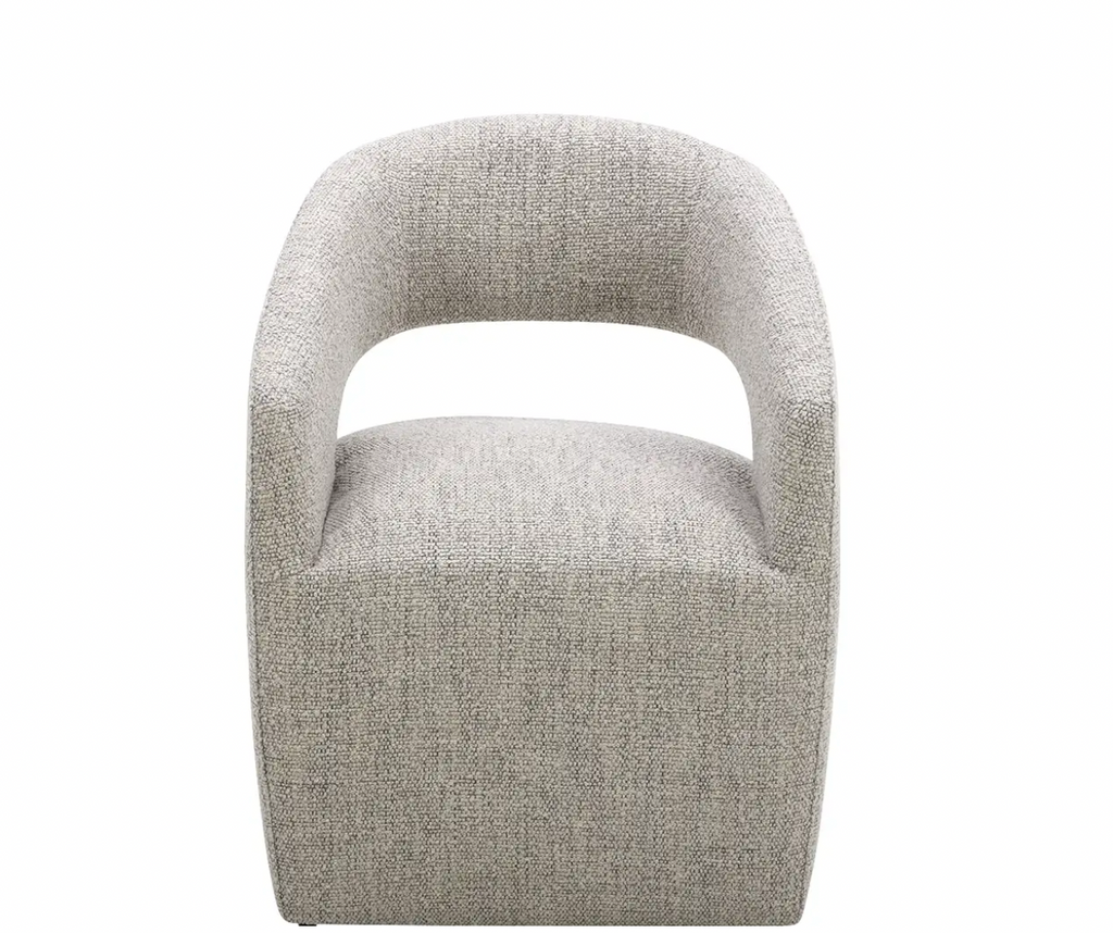 A contemporary dining chair upholstered with a NeverFear performance boucle, Burrow is easy to clean and easy on the eyes with a swivel base that lets you pass the peas and bounce from conversation to conversation. The curved back, along with the ultra-comfortable feather, high-density foam and poly-fill cushioned seat adds living room comfort to the dining experience.