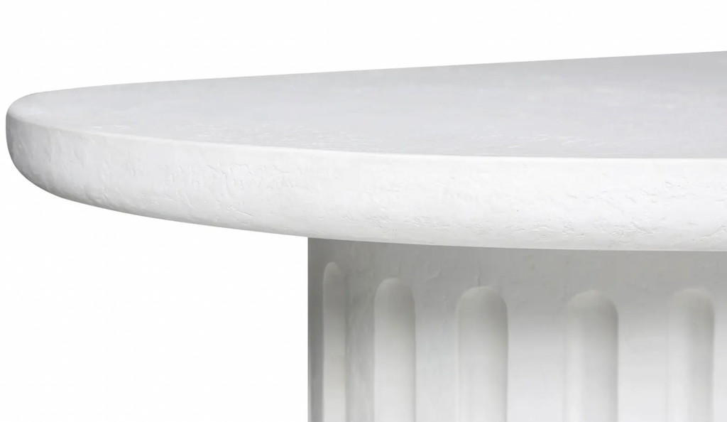 A striking interplay of shapes. The rough concrete texture adds depth and complexity to an otherwise simplistic form. Exceptionally composed of Glass Fiber Reinforced Concrete, this table offers unique aesthetics while maintaining its beauty.