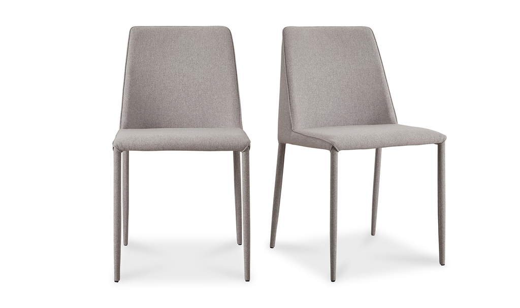 Pure, elegant simplicity defined. The Nora dining chair’s single shade of color blocking adds a touch of fine dining to any living space. An iron frame is covered in subtle grey fabric, both aesthetically pleasing and soft to the touch, while its square shape and minimal construction provide a beautiful contemporary design. For both casual and formal affairs, the Nora dining chair is a must-have.
