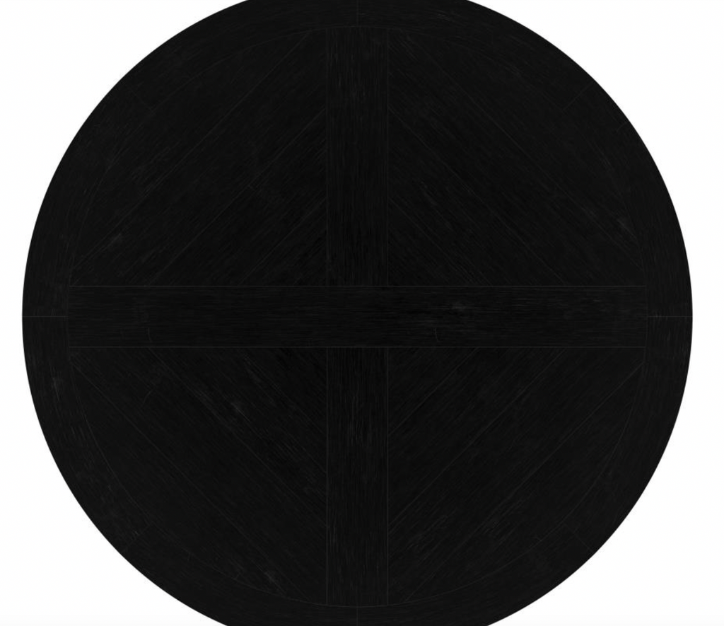 Round dining table with a sculpted pedestal base for timeless elegance. Crafted from 100% solid pine for lasting durability and strength. Inlaid veneer pattern enhances the round tabletop’s refined appeal. Pedestal base with curved feet evokes classic European craftsmanship