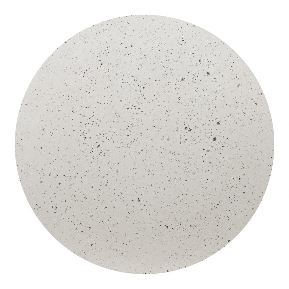 Perfect for an open-plan garden, patio setting, or balcony with spacious seating for 4, this outdoor table's rounded, pedestal shape contrasts flawlessly within an organic environment. Smooth and minimal, it features a unique concrete terrazzo composite that displays a natural mineral effect with its speckled, contemporary aesthetic.