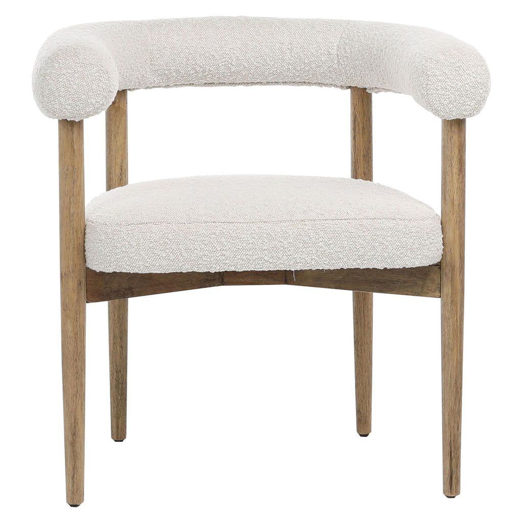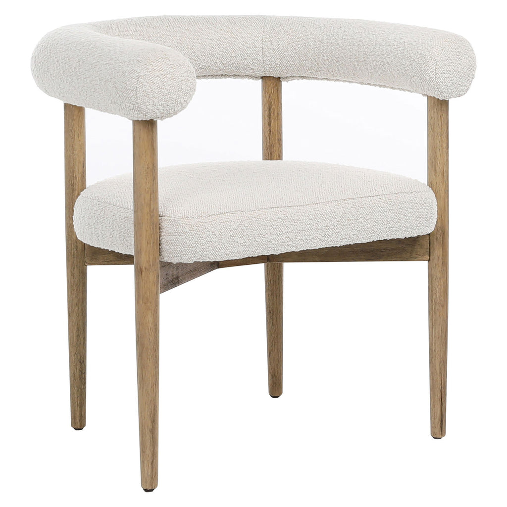 Material: Boucle Upholstery and Rubberwood LegsFinish: Cream Boucle Upholstery with Natural Wood Finish