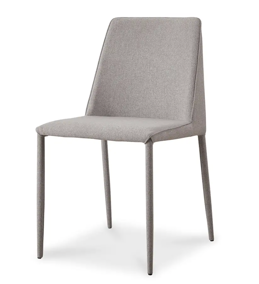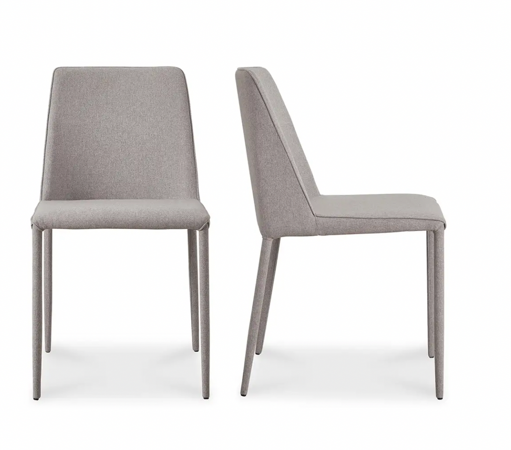 Pure, elegant simplicity defined. The Nora dining chair’s single shade of color blocking adds a touch of fine dining to any living space. An iron frame is covered in subtle grey fabric, both aesthetically pleasing and soft to the touch, while its square shape and minimal construction provide a beautiful contemporary design.
