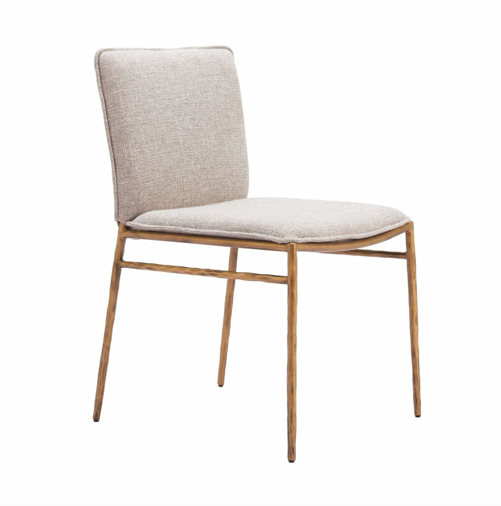 Meet the North Dining Chair, where durability meets modern elegance. The chair's forged-look steel frame adds an industrial yet refined aesthetic. A blend of sturdy materials : textured fabric and steel.