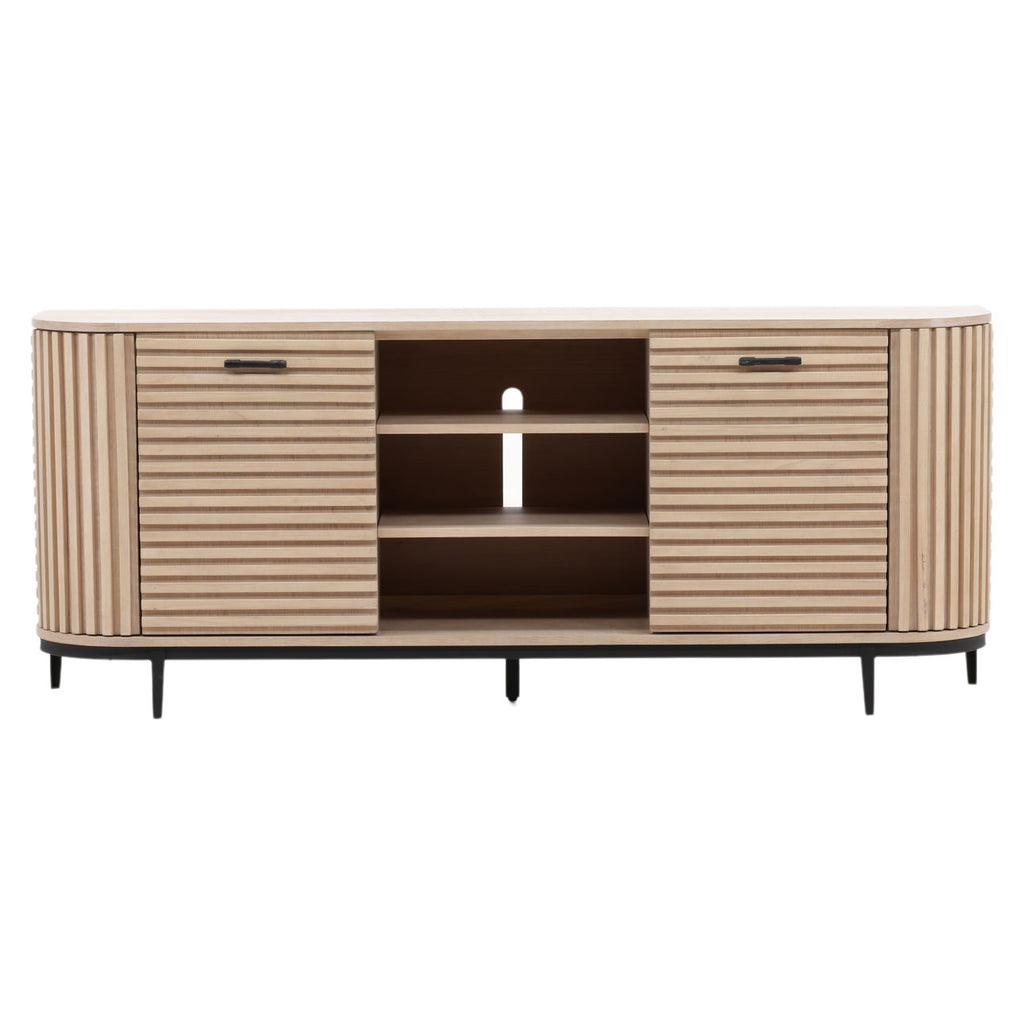 Textured Rubber Wood , Oak Veneer and black metal legs