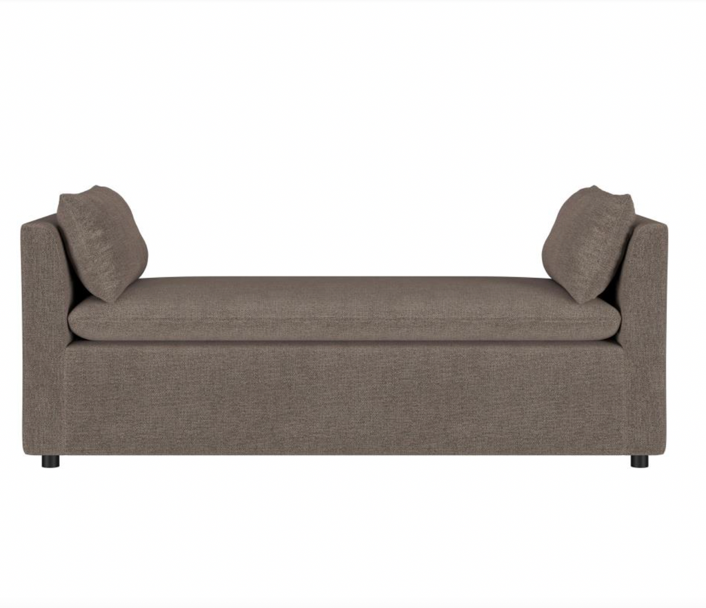 Create a chic spot for lounging or relaxing with a modern upholstered bench. It features Asian hardwood framing and soft brown upholstery.