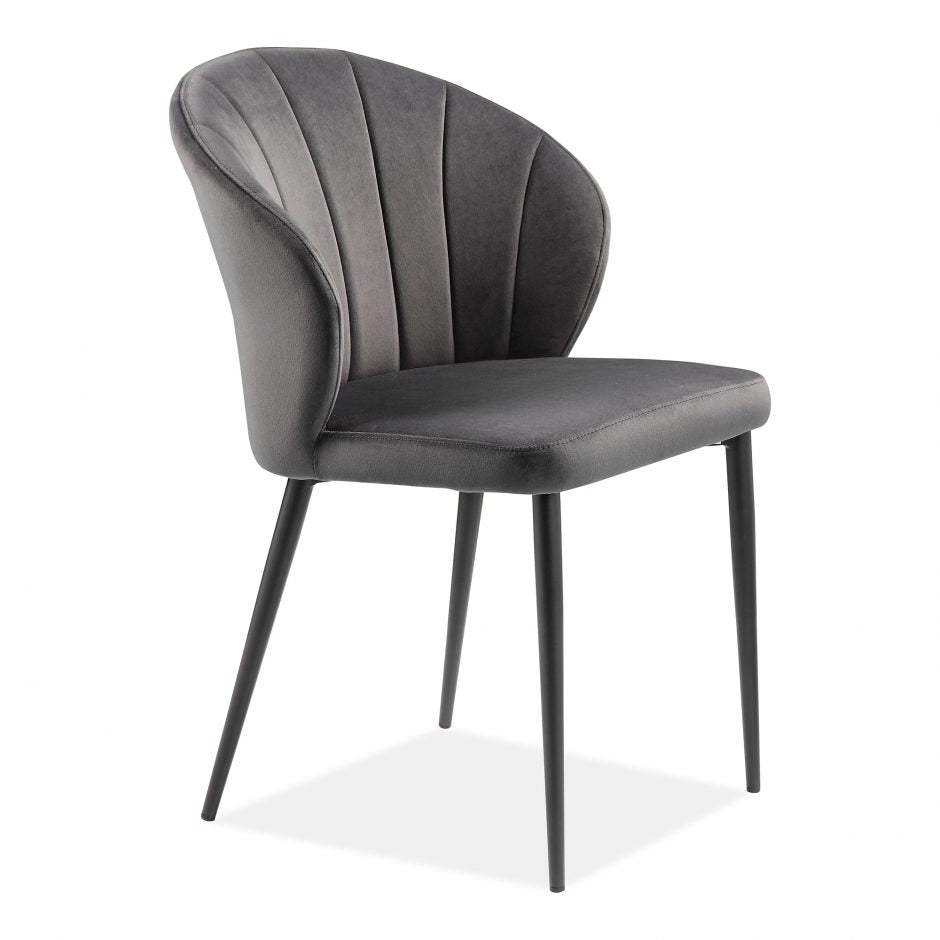 With a curved, high back, welcoming scooped arms, and slim metal legs, these dining chairs are the perfect mix of style and comfort. Dine with good company and sink into this soft velvet upholstery that will surround you and your guests in contentment and luxechannel-stitched ribbed back detailing with extra comfortable foam padded seat and backrest.