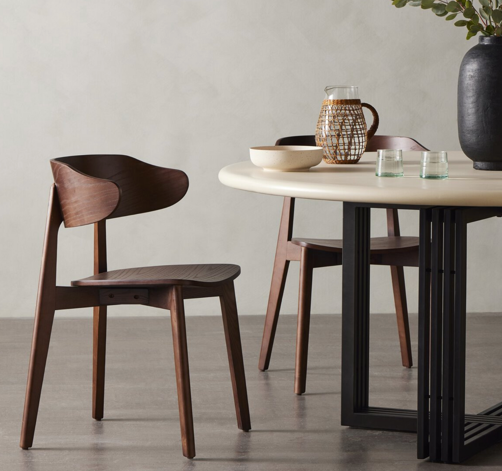 Made from light-finished solid oak, an oval-shaped dining table flaunts eye-catching curves, with an extension feature that expands the table from 87" to a roomier 107".