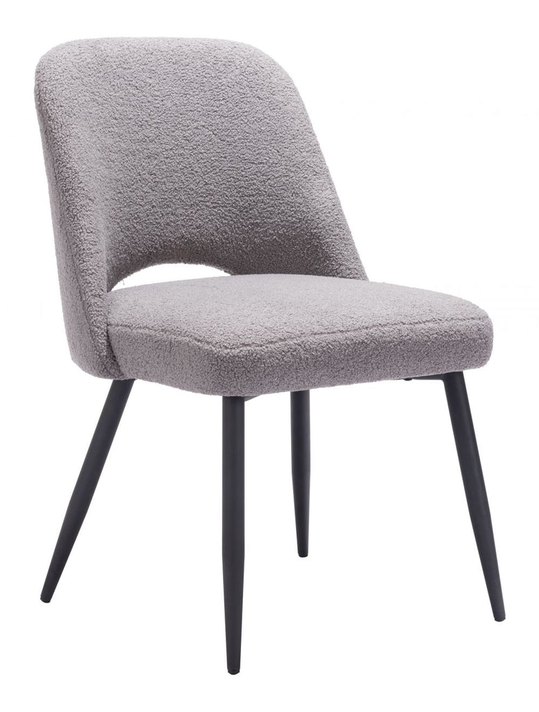 The Teddy Dining chair has powder coated steel legs and is wrapped in a soft textured faux sheep fabric. This chair has a mixture of soft boho textures with a modern shape.