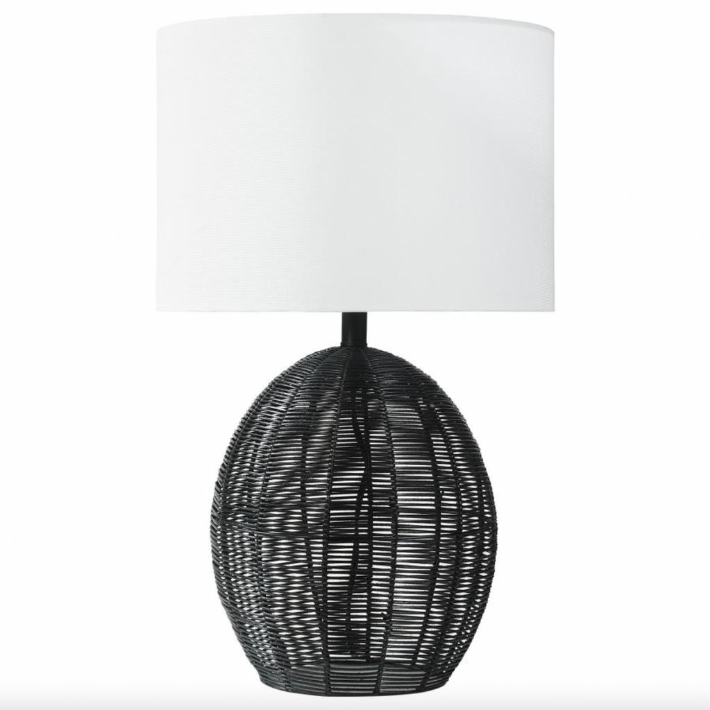 This table lamp seamlessly combines natural textures with modern elegance. Featuring a handcrafted rattan base in a cylindrical shape, it exudes a warm and organic appeal.