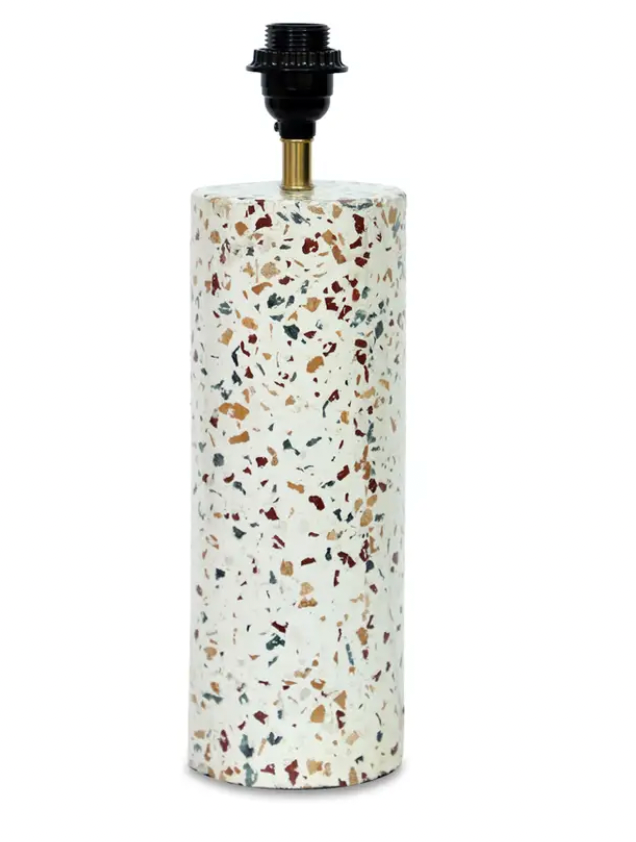 Terrazzo marble features variations of multi-toned in this Terrazzo Cylinder Table Lamp. A hand loomed cotton shade and brass detailing gives each lamp a sophisticated finish. Perfect for adding an artistic flare to your space.