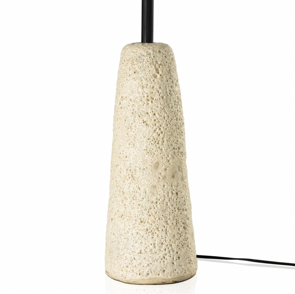 Paired with a slim, black-finished iron post, a tapered ceramic base is finished with a white reactive glaze, making each piece truly unique with subtle variations. An ivory linen shade keeps things looking light and airy.