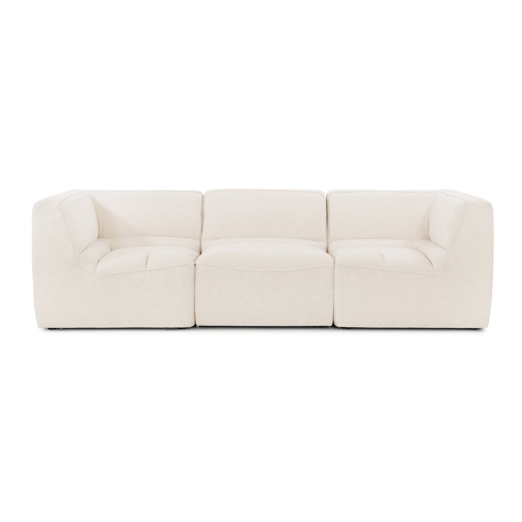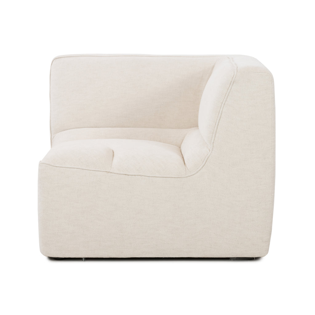 Sophistication defined. A modular sectional made from a just-right blend of cotton and linen, with wide horizontal channeling to keep the eye moving while creating a perfectly comfortable sit.