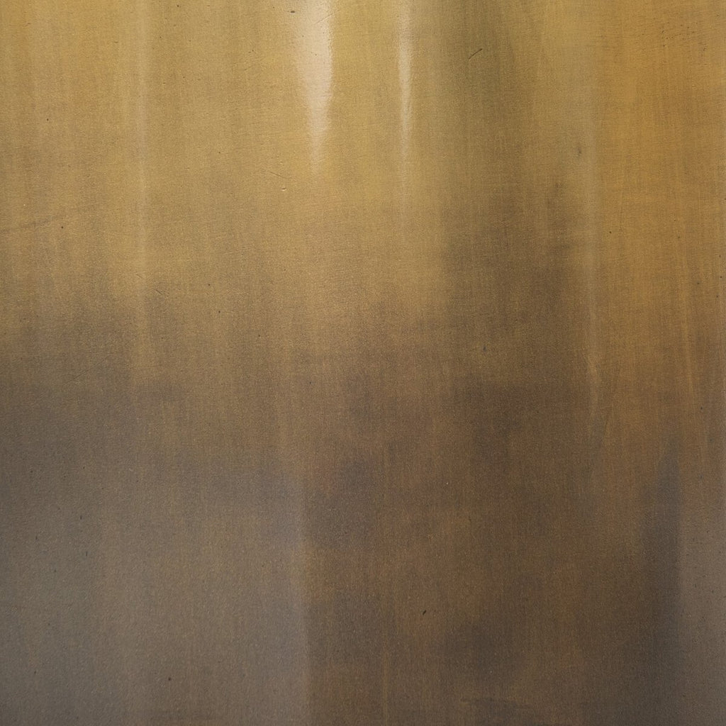 An antique brass finish highlights iron's gradual blending of hues, delivering a distinctive ombre effect to the cylindrical end table. Great solo or in pairs.