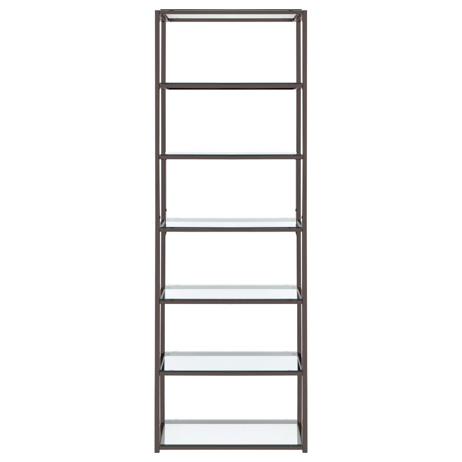 Built from steel with a black nickel finish, its frame is delightfully neutral, yet beautiful. Clear tempered glass shelving offers a gorgeous coordinating look.
