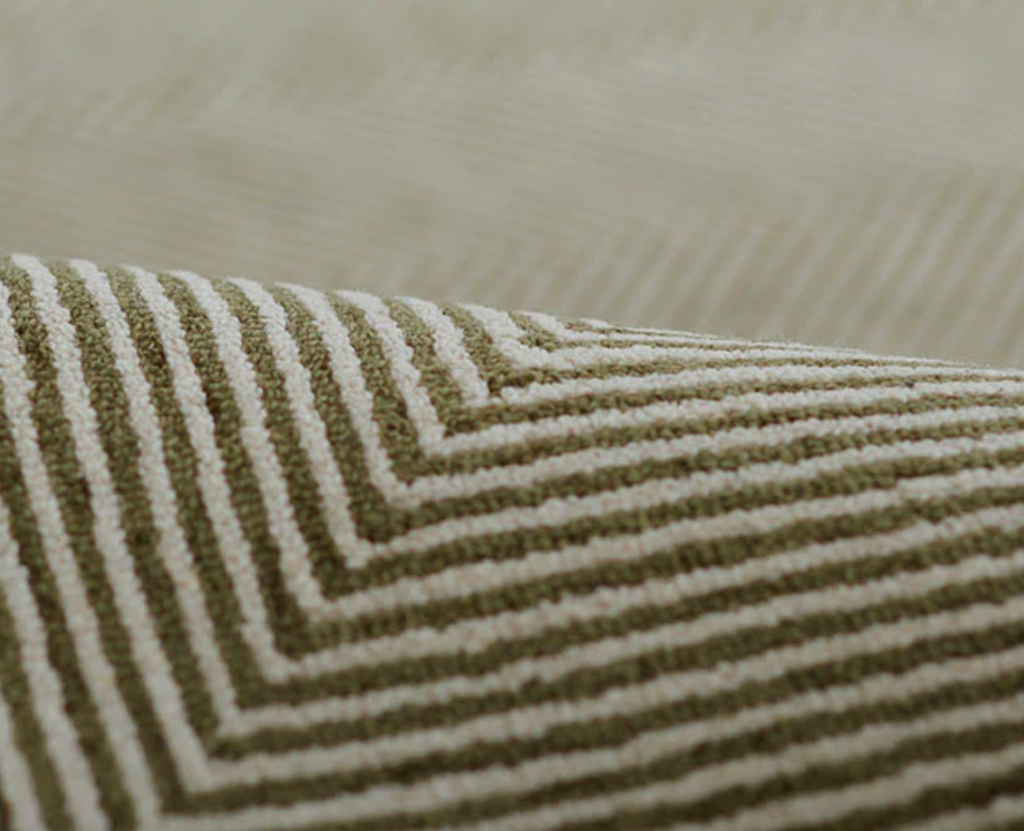 Luxurious and exclusive, elevate your space with a green zigzag rug, sized 8' x 10'. Indulge in the artful blend of craftsmanship and design, adding sophistication and elegance to your home.