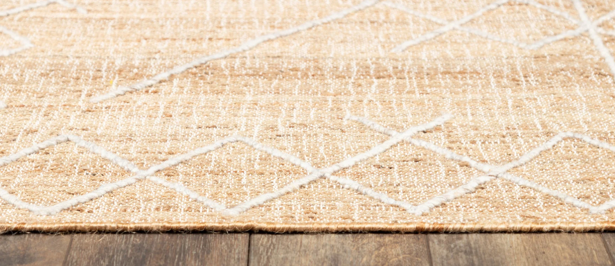 With a reverence for symmetry and simple geometric shapes, the Argan Collection was inspired by traditional African mud cloth patterns. Made from a handwoven combination of jute and wool, each rug possesses a perfectly imperfect look. The evidence of the maker infuses each rug style with custom textures and variations that are finished with a raised wool topstitch.