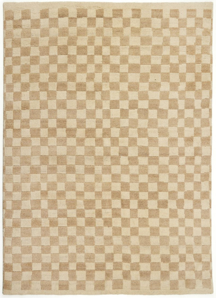 Tonal wool weaves an organic checkered pattern. Following a technique and tradition dating back thousands of years, each hand-knotted rug can take two to three master weavers five to six weeks to complete, depending on the size and intricacy of each rug. Every hand-knotted rug is designed to wear beautifully over time, making them heirlooms to be passed down for generations.