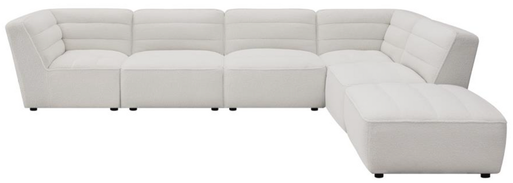 Soft and supple, faux sheepskin upholstery and horizontal channel-tufting come together in a modern and beautiful amalgamation.