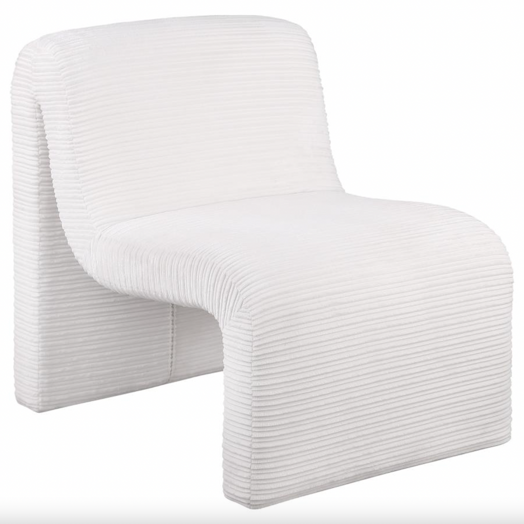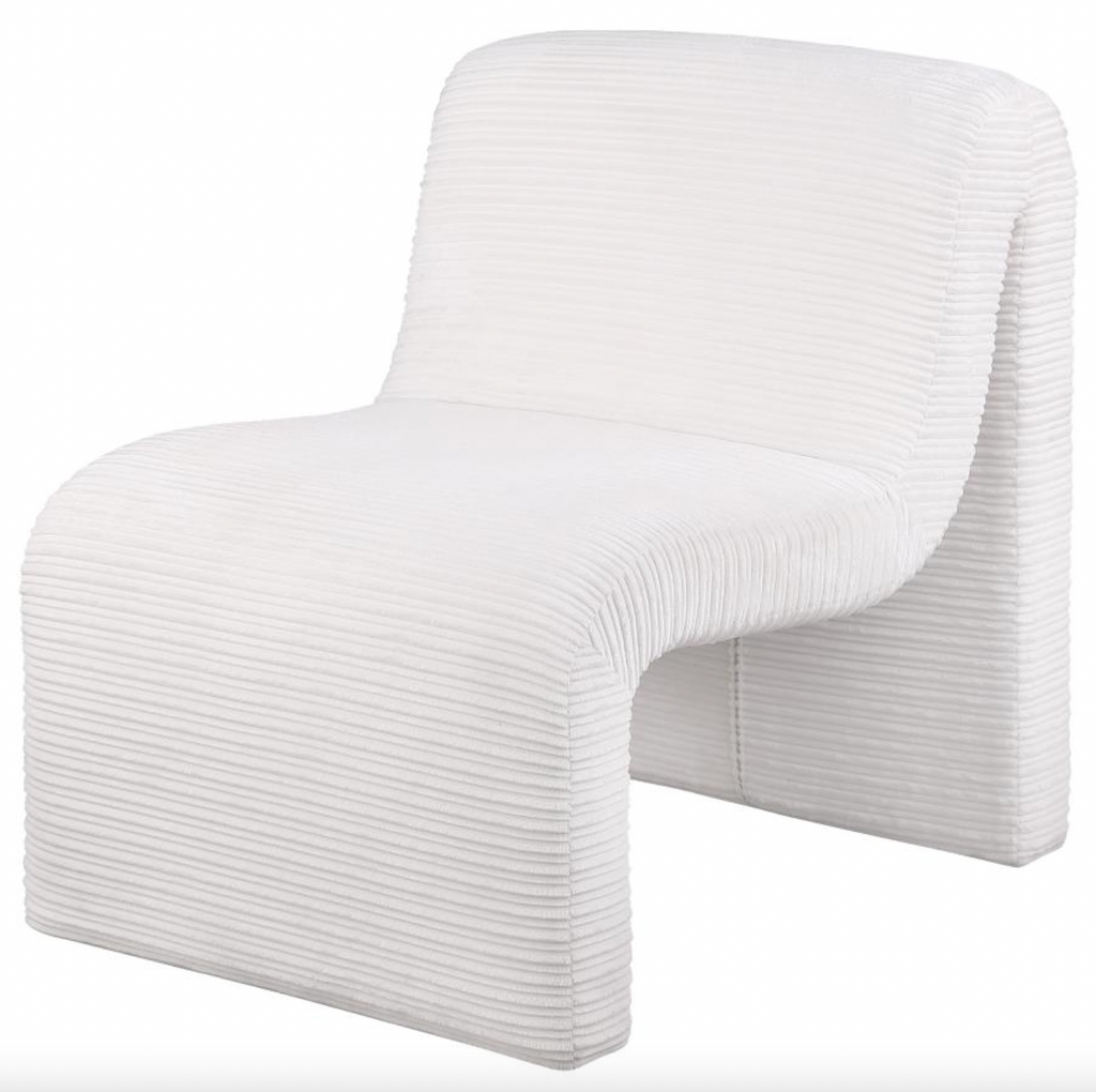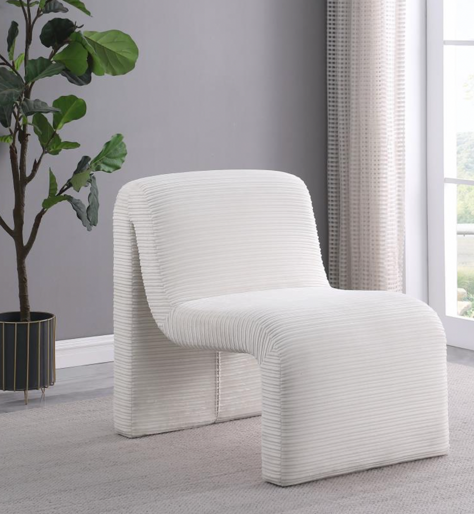 Introduce a sculptural component to your compelling seating group with this modern accent chair. Neutral upholstery has a ribbed look, creating impeccable texture and depth.