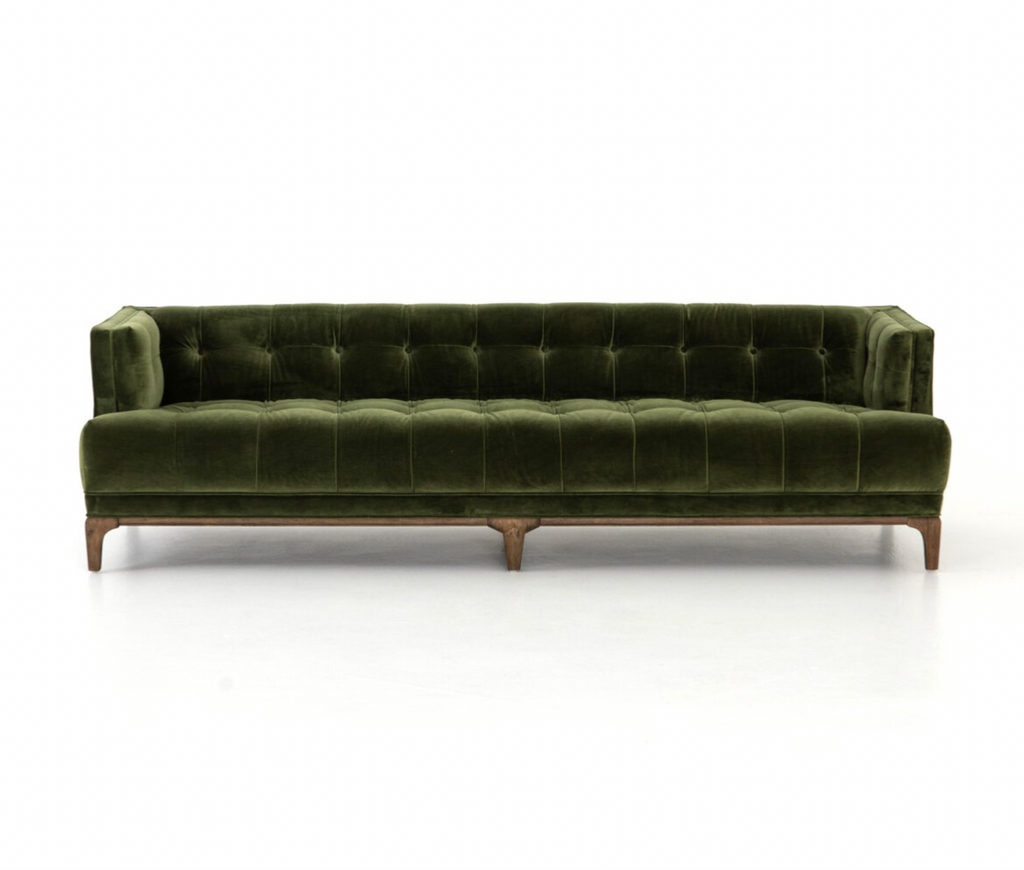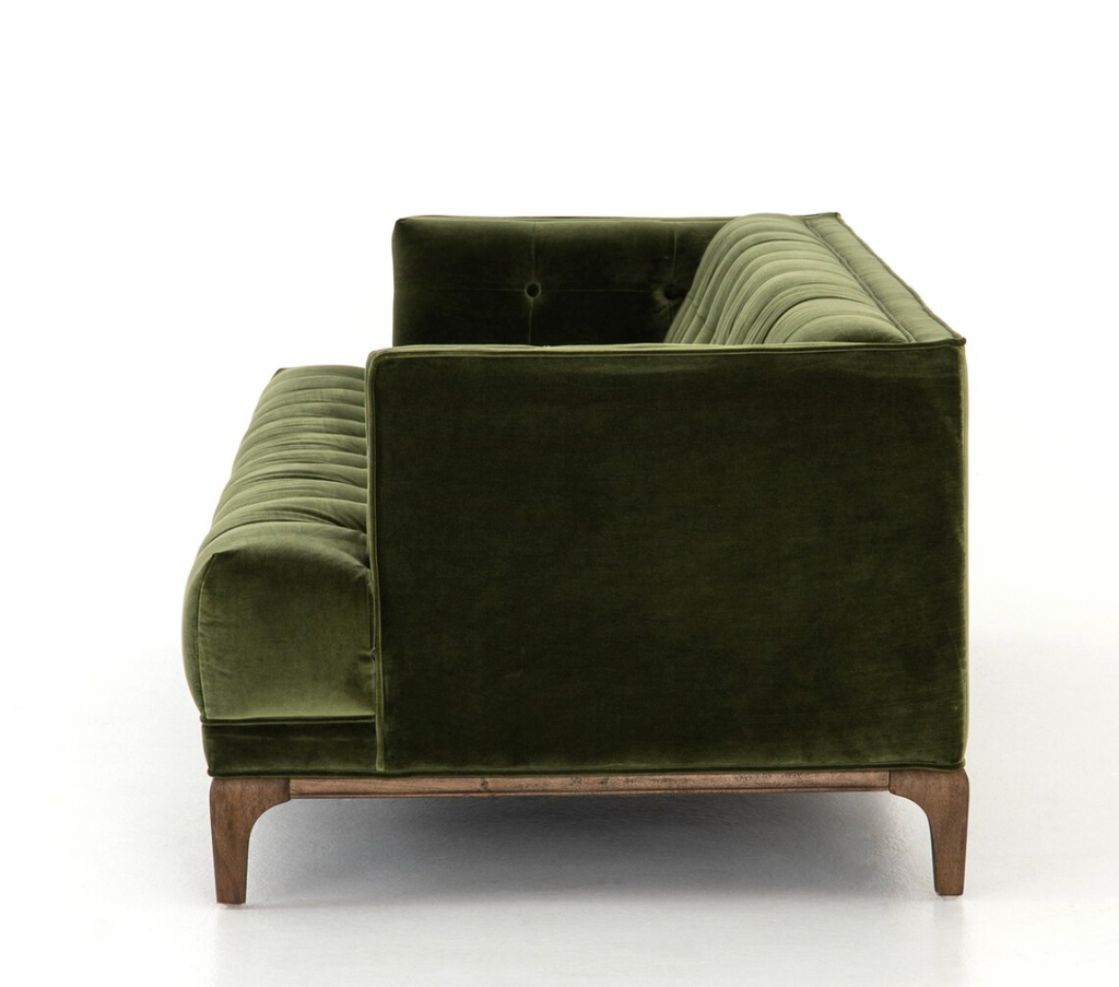 A stylish take on mid-century modern, the Hunter Sofa features a low, clean-lined silhouette upholstered in luxurious fabric.