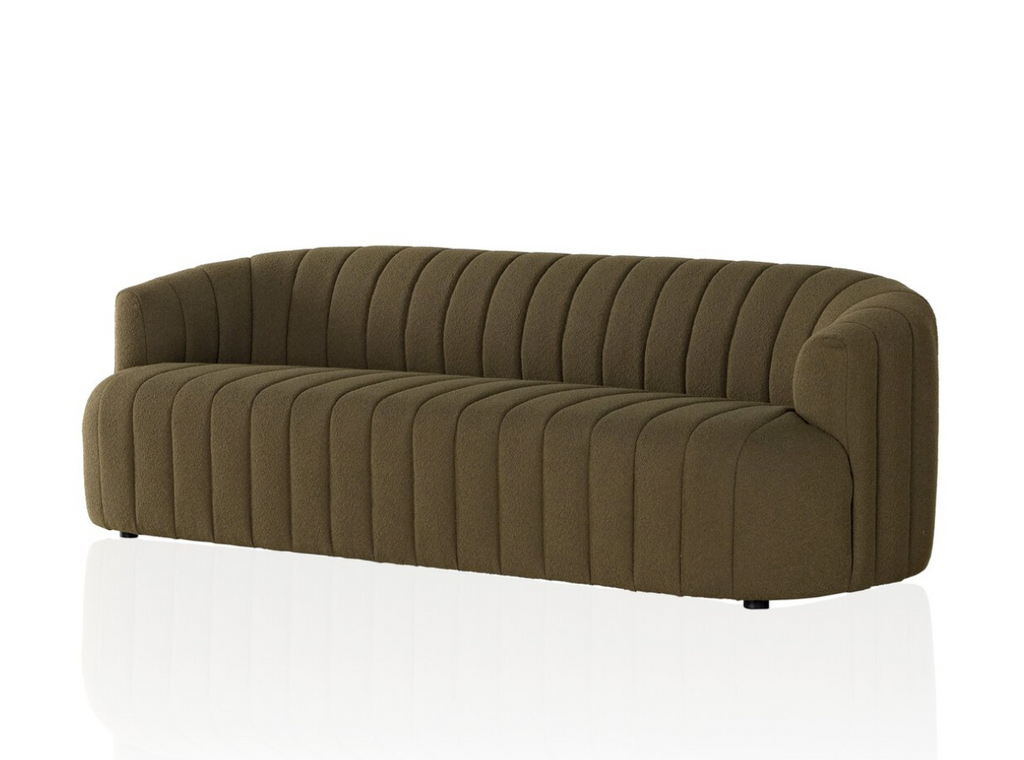 Meet the sofa that offers it all: curves, texture, durability, and sustainability. Detailed with wide, vertical channeling all around. Easy to clean and made from fully recyclable materials, FIQA fabrics are machine-washable, stain-resistant, water-repellent and antimicrobial. Stunning Boucle fabric.