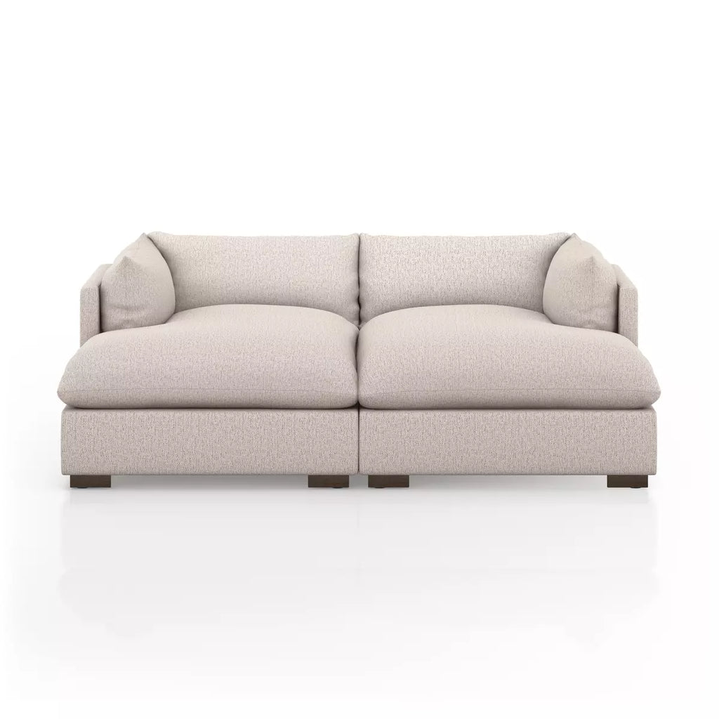 Clean-lined and simply styled, high-performance fabric places a family-friendly twist on this quintessential double chaise. A wooden base keeps things classy while casual. Various configuration options offer flexibility in any size space.