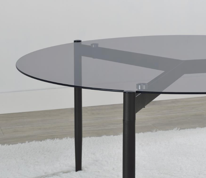 Elevate your living space with the sleek and modern Roxa Round Smoked Glass Top Coffee Table. Crafted with metal and a smoky gray tempered glass top, this piece exudes contemporary charm while creating a welcoming atmosphere for conversations. Upgrade your decor with this stylish addition.