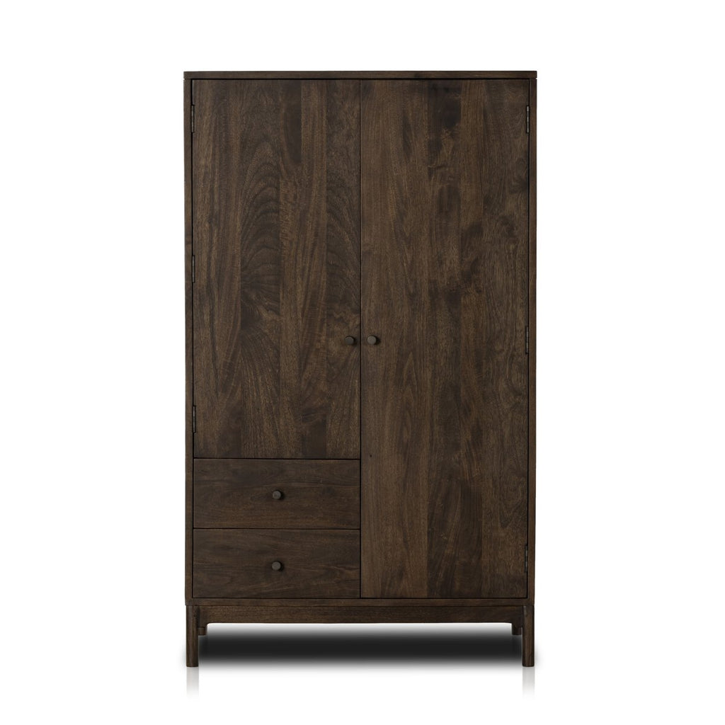 Make space for style. A large, storage-minded armoire is made from solid mango and finished in an aged brown, reminiscent of European antiques. Interior iron rod for hanging garments plus roomy drawers for out-of-sight storage.